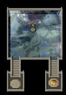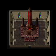 Azimuth's chambers were the last area of the Cathedral visited by Kain and positioned behind the central locked door behind the main altar. The chambers opened with an area containing a large stained glass window of the confrontation between Malek and Vorador after the latter's Slaughter of the Circle in Nosgoth's early history. The Chambers consisted of a number of smaller rooms eventually emerging in a large rectangular chamber with a raised marble plinth on which Azimuth stood, summoning purple ogre Demons from bloody runes on the ground.[Blood Omen][Blood Omen/8][Blood Omen strategy guide]