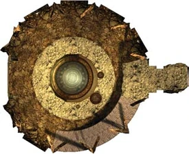 Returning to the main area of the Cathedral, Kain was finally able to enter Azimuth's chambers to confront the Dimension Guardian. Both of the items he had recovered from the Cathedral would come in useful against Azimuth who - unaware of the presence of both devices in her Cathedral - summoned Demons from bloody runes to combat Kain. When she was within range, a single strike of the Soul Reaver was sufficient to Kill Azimuth. Defeating Azimuth, Kain claimed her Third Eye Pandant pillar token and along with it found a time streaming device she had stolen from Moebius in order to gather demons from other ages. Kain immediately understood what Azimuth had been intending to do with the device, but did not realize that she had used it already, or why it was his salvation.[Blood Omen][Blood Omen/8][Blood Omen strategy guide][3][4][5] Kain would subsequently use the time-streaming device to escape the Battle of the Last Stand in "Stranded in Time",[Blood Omen/10] while the Soul Reaver went on to become Kain's iconic weapon.[Blood Omen][Soul Reaver][Soul Reaver 2][Blood Omen 2][Defiance]