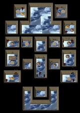The initial area of the Cathedral is effectively mirrored in the first 'alternate' dimension area, with the layout resembling a selection of small square and rectangular rooms joined by doors and Teleporters that led to different realms. Most of the details of the Cathedral were reduced to bare rooms with creme walls and with floors resembling dark cloudy skies, while The Wall buttons were made of a material like stained glass and the Black mages of the Material Cathedral were replaced by Giant demons.[Blood Omen][Blood Omen/8][Blood Omen strategy guide][1]