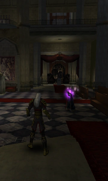 Bells returned as a puzzle element in a minor capacity in Blood Omen 2, where two bell-related puzzles were featured in A Question of Faith (chapter) in the Upper City. The first was discovered in the clock-tower near the Bishop's Manor and was rung by Kain as part of a minor puzzle to cause the workers to change their shifts and thus open the gates, allowing Kain access to the Manor. Shortly after Kain would pursue Marcus to Meridian Cathedral and managed to confront him inside the building, where he would use two Switches in the lower cathedral to ring the Cathedral bells and momentarily stun Marcus. Eventually Marcus ordered Sarafan priests to cut the bell ropes, lowering the bells and preventing the switches from activating them, though Kain could still grab-throw the priests directly into them for the same effect.[Blood Omen 2][Blood Omen 2/4][Blood Omen 2 strategy guide]