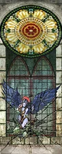 As Raziel entered and explored the mansion he soon found an unusual chamber with a distinctive fountain at its heart. Above the fountain three Hylden gargoyles were positioned on the balcony, each channeling water into the pool below. Around the edges of the chamber several frescoes and murals were positioned depicting three Ancient Vampire champions impaling Hylden adversaries with unique spear weapons - with finding the three spears being a main objective to Raziel in that chapter.[Defiance][Defiance/8][Defiance strategy guide]