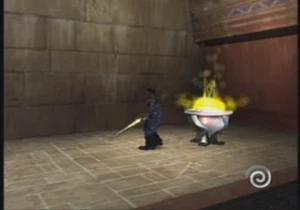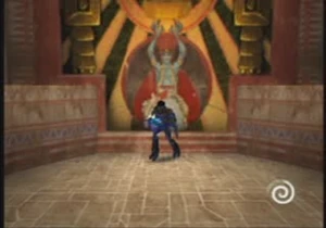 Returning to the bottom of the forge and the blue altar, Raziel restored the Blue Heart to the blue mummy, activating the altar room. This caused the blue mummy and heart to heal and disappear, spawning a single soul and animating the large head, which quickly devoured the soul of the mummy and exhaled an updraft which Raziel could use to guide further up the forge.[Soul Reaver 2][Soul Reaver 2/6][Soul Reaver 2 strategy guide (Prima)]
