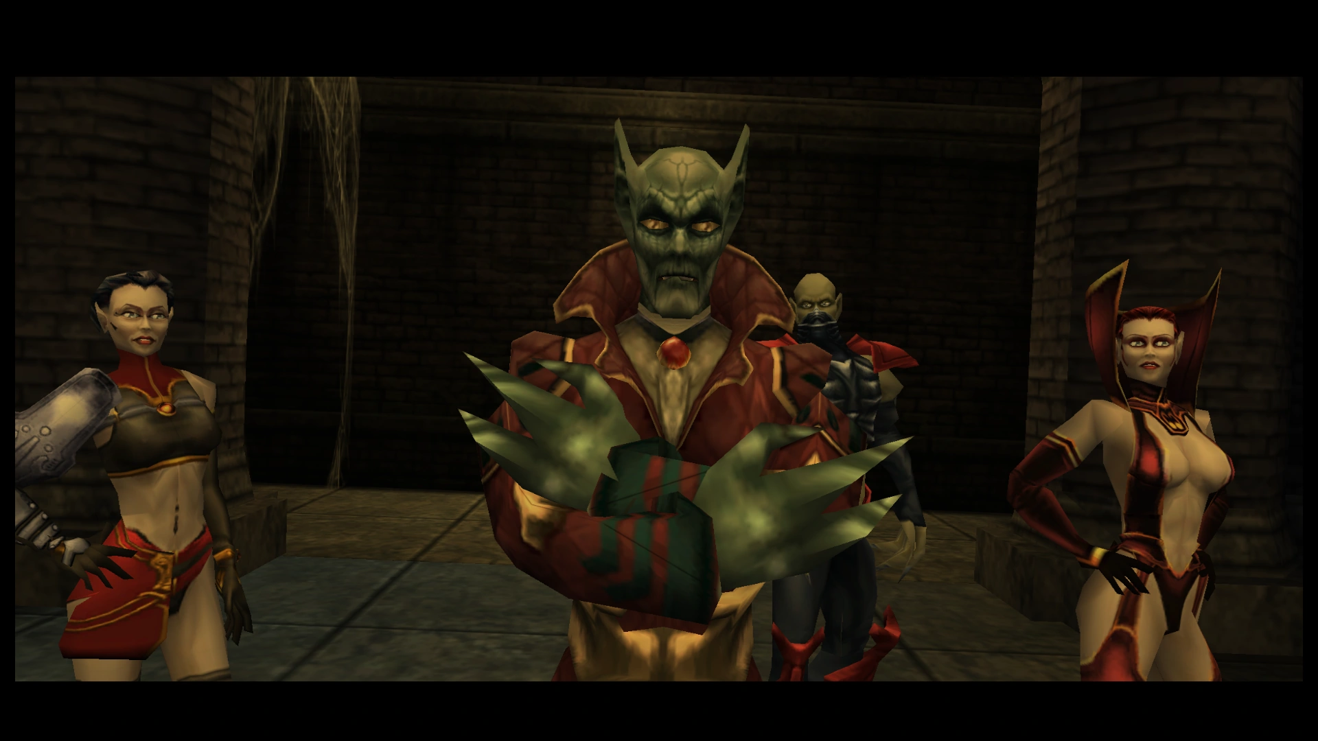 Throughout Blood Omen 2, Kain reluctantly worked with the Cabal to undermine and overthrow the Sarafan; planning ultimately to kill the Sarafan Lord and recapture the Soul Reaver and Nosgoth for himself.[7][8] On Vorador's orders, Kain would rescue the captured Umah from the Sarafan Keep (after meeting the Cabal Contact Bishop in the Upper City),[9] recover the Nexus Stone from the Industrial Quarter[10] and find and destroy the Device (after seeking the advice of the Seer in the Canyons and the Builder in the Eternal Prison).[11]