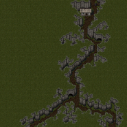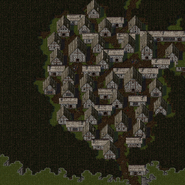 The exit of the Bone Armor led out to the southeast of the town, where a path led northward along the east of the settlement. The pathway branched into a Y-shape with two trails continuing northward and the western on containing an an unmamed blacksmith. At the branch of the trail an open doorway led down into the the complex of the Inspire Hate Dungeon, however it was possible to miss the entrance to the dungeon proper an emerge from the underground passages in the final above ground section of the town.[Blood Omen][Blood Omen/4][Blood Omen strategy guide]
