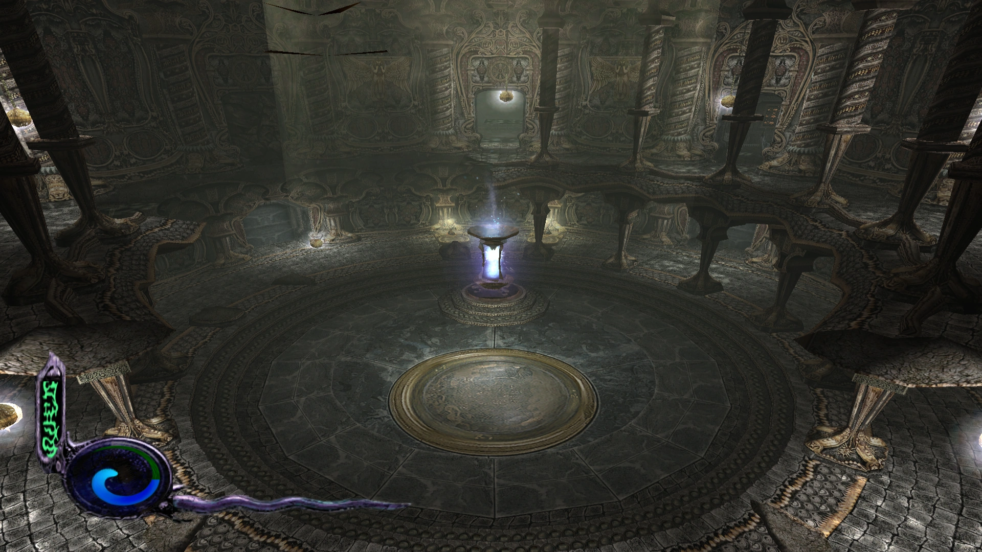 The Dark Forge portal room has an unused scaleable wall and upper ledge which contain no items and have no usage in game - this could suggest the room was copied from another similar portal room, or that an item of some description was intended to be gained from the ledge.