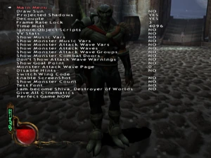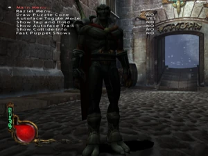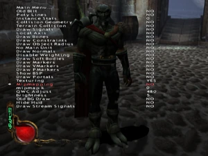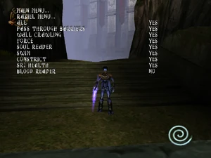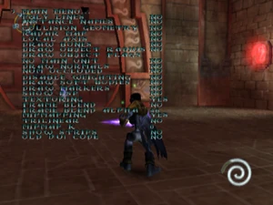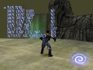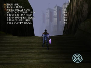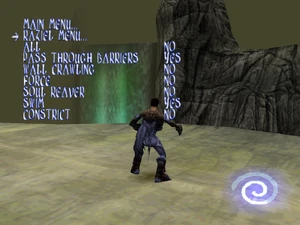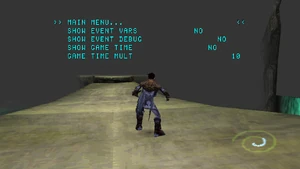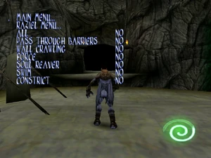 Debug menus are a secret menu system that exists in the code of Legacy of Kain: Soul Reaver, Soul Reaver 2 and Legacy of Kain: Defiance (as well as a number of non-Legacy of Kain titles). They are typically used by developers to test features, locations and a number of other item by allowing instant access to change or alter these parameters. Debug menus are usually removed or their access blocked prior to a retail release, however in the case of the Legacy of Kain series, it is possible to re-enable access to them through various methods.