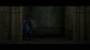 Doors were also featured in Blood Omen 2 where they were seen from the first chapter and were again opened physically by the protagonist when unlocked. A number of doors would be encountered when locked, however other mechanisms were present that could be used to open locked doors, such as various Switches and the use of the Glyph magic network. As with other interactable objects in Blood Omen 2, doors that could be opened would glow a white color when Kain was within range.[Blood Omen 2][Blood Omen 2/1][Blood Omen 2 manual (US)][Blood Omen 2 manual (UK)][Blood Omen 2 strategy guide]