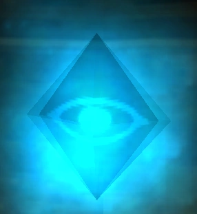 The Eldritch energy power-ups are blue cone-like artefacts with an eye symbol in its centre.