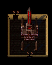 The place was replete with traps, and heavily guarded by animated entities fashioned by Elzevir; melee-attacking humanoids, needle-wielding humanoids, rag dolls and teddy bears all patrolled the manse. The internal lighting was poor, and Kain was forced to use his Spirit Wrack spell to complete some compulsory puzzles. With the exception of a few chained humans, there was little opportunity for him to feed. However, all of the foes he faced within were particularly vulnerable to the Flame Sword.[1][Blood Omen]