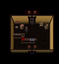 The House doubled as Elzevir's residence and workshop, and was characterized by its wooden floors, burlap sacks, barrels of toy-making components and generally-dim lighting. Its exterior was large, but relatively simple in design, with yellow, plaster-textured walls, black windows and a tiled roof. Lanterns adorned the interior, which was visibly supported by beams, and all doors were adorned with teddy bear motifs. Some rooms contained bookshelves, paintings, furniture and counters strewn with material and tools. Stairs were carpeted, and two rooms contained stone floors partially frozen over with ice. Traps and hazards in the form of spike pits, spiked walls and spiked balls were commonplace.[Blood Omen]