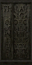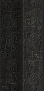 - The script is notably unclear in places; along with being rendered in a low-resolution format, individual symbols and sections of text are often repeated and reflected to construct the arrangements seen in game. One notable repeated arrangement "OlIrFIC" appears on its own, along with an illustration of a vampire figure, perhaps suggesting this particular arrangement represents a name.