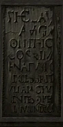 Empire Script is encountered throughout Legacy of Kain: Soul Reaver, primarily in areas of vampire construction. The script is first seen in Necropolis and subsequently appears in the Sanctuary of the Clans, the Ruined City of the Dumahim, outside the Tomb of the Sarafan and in several other connecting areas.