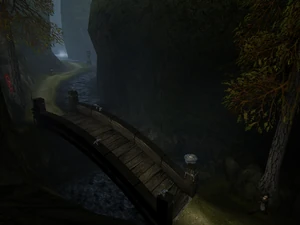 The Lake appeared to have many streams and rivers flowing to and from it and it is likely that many nearby waterways were connected to lake - the bodies of water south of the Cemetery and around Ziegsturhl in Blood Omen were explicitly connected on maps;[Blood Omen][Blood Omen strategy guide] while in Defiance the stream Raziel followed from the Cemetery to the Pillars and the waters around the Stronghold (particularly those flowing beneath the high 'bridge' and in the cavernous 'cistern' areas) were placed in areas that suggested they were connected to the tributaries of the lake.[Defiance/6][Defiance/3][Defiance/1][6][7]