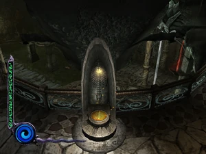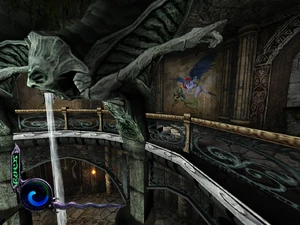 Progressing further into the mansion, Raziel soon found a statue of one of the champions in the Great Hall of the mansion. Activating several nearby LightOrbs with the Dark Reaver caused the Heart Seeker spear to appear in the hands of the statue, where Raziel could recover it.[Defiance][Defiance/8][Defiance strategy guide]