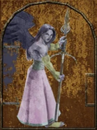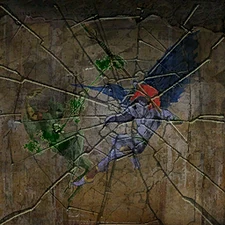 Like its fellow spears the Heart Seeker also appears in the background environment of Vorador's Mansion in murals presumably depicting the Vampire-Hylden war, where it is associated with an ancient vampire champion - a male vampire in a toga marked with a Water symbol - the same champion depicted in the statue where the spear is gained. Most notably it is seen on stained glass above both the Grand Entry area and the Water Forge fountain room and he can also be seen on murals on the door to the great hall where the Heart Seeker is gained and within the great hall itself. Many of the murals featuring the vampire show him in flight impaling and apparently ripping out the heart of a Hylden with the spear - this action is ultimately copied by Raziel on the Hylden statues in the fountain room.[Defiance][Defiance/8]