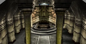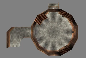 The large ornate door is the entrance to the Citadel. The lower streets lead into the anteroom.
