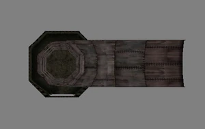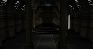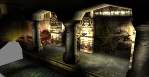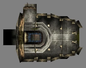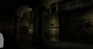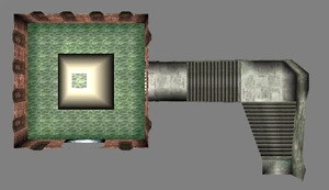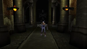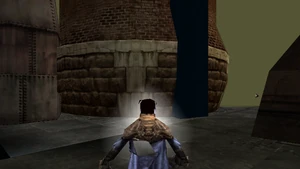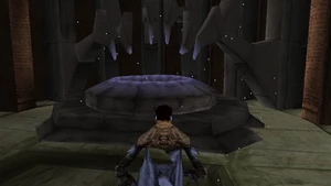 In the external area hunters patrolling and boulder objects are missing. A barred grate is present on the southern wall which allows Raziel to overlook the approaching path - The grate can be seen from outside even in retail but from inside is replaced with a rock wall.
