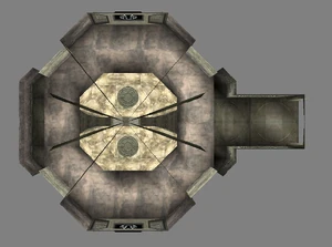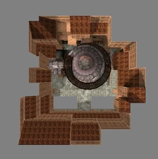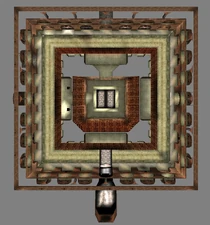 The 'City2' square area has no locked door at the center of the room and the balcony with the switch which opened the door in retail has a railing preventing jumping access - a human is however present on the balcony possibly suggesting a Possession puzzle was intended to gain access to the upper levels. Interestingly even in retail the area is decorated with a symbol which the alphas allow us to identify as the prototype mind symbol.