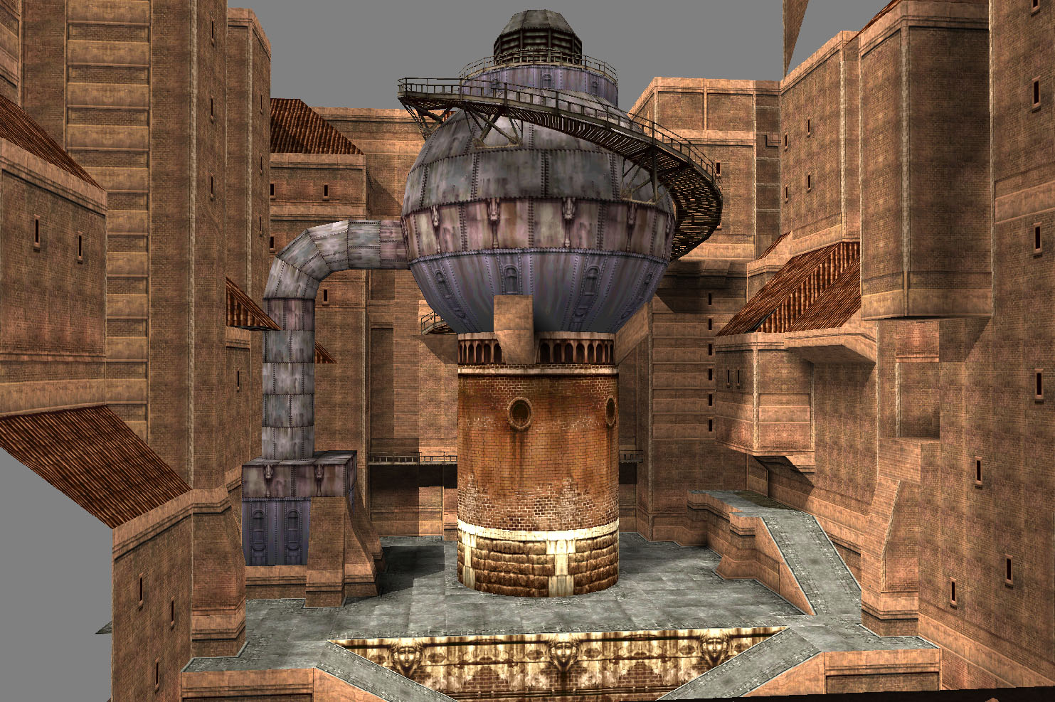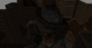 The main water tower area has fewer occupants.. The tower itself bulges notably in spectral and has a climbing wall alongside it which is missing in retail – this features a slight overhang at the top of the wall. Atop the tower there is actually a small door in alpha which allows entry to the internal cistern and water pipes of the tower.