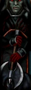 In Blood Omen, the Iron armor was the most basic of his armor repertoire, available at the start of the game along with the Iron Sword,[1] it provided a decent all-round protection for Kain.[2][3] The armour was originally worn by Kain as a Human before his transformation into a vampire and it was originally white in colour. Kain was wearing this armour when he was murdered by brigands and when the Necromancer Mortanius resurrected Kain as a Vampire, the Iron Armor was transformed along with him into its black and red form,[4] noting the change in his armor Kain commented that it was now 'forged with hellfire' and was presumably now somewhat enhanced over regular armor.[5]
