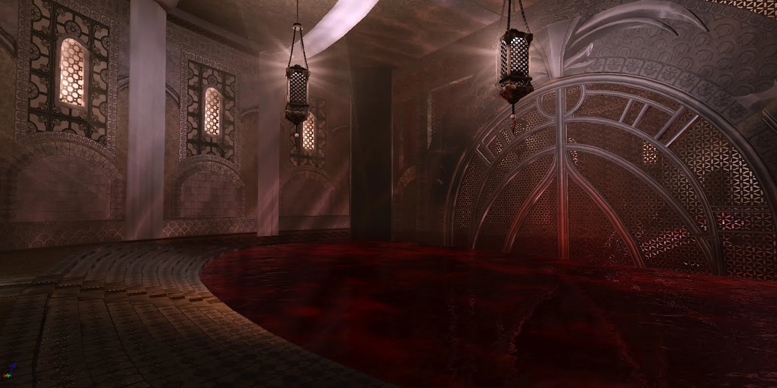 - The "red chamber": A chamber filled with red liquid, perhaps blood, appeared in one of the screenshots secured by Divine Shadow. It may have represented a homage to the Blood Omen: Legacy of Kain blood fountains, or the Soul Reaver 2 Fire Forge.[17]