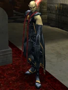 ↑ 8.08.1~Kain comes to a closed gate with a crank. Beyond the gate stands a vampire in an alleyway, with the corpses of two clergymen at his feet. This is Marcus.~ Crystal Dynamics. Legacy of Kain: Blood Omen 2. (Eidos Interactive). PlayStation 2. (March 19, 2002) Transcript.