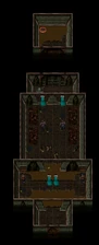 The next map area was again a succession of square and rectangular areas, partially flooded and necessitating the use of the Mist Form. The first room began in a small square alcove bordered by wooden beams which opened into a larger rectangular area that was completely flooded, with a shooter at either side and a central pillar supporting a wooden beam in the middle of the chamber. A permeable door on a small island at the north of the chamber led to the next room - a square room containing two Vortexes and another permeable door to the north.The third room was another flooded area with small islands around the entry and exit gates in the north and south. This time four shooters were positioned in an irregular pattern along the walls and a single skull floated in the center in front of a central beam-supporting pillar. The northern door led to the next map area.[Blood Omen][Blood Omen/6][Blood Omen strategy guide]