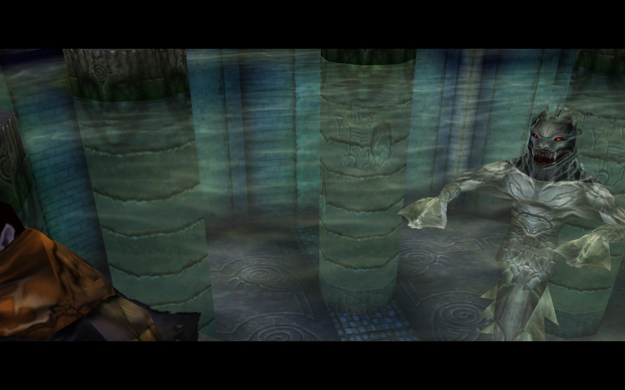 When Raziel returned five centuries later, he passed through the Tomb of the Sarafan and using the Telekinetic Force Projectile he was able to enter the Drowned Abbey. Carefully negotiating the waterways (which would still have dissolved Raziel's own Material manifestation), Raziel made his way through the Drowned Abbey and assailed by the 'cobra-like' Rahabim, Raziel was eventually able to locate Rahab's chambers. Raziel confronted his 'younger brother' with the revelation that they had once been Sarafan, but Rahab was unconcerned, believing Kain had "saved [them]... from [them]selves". Rahab confirmed his loyalty to Kain and that he still spoke with their master; indeed Kain had already warned Rahab of Raziel's return.