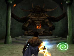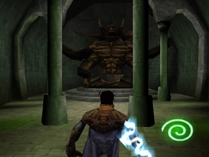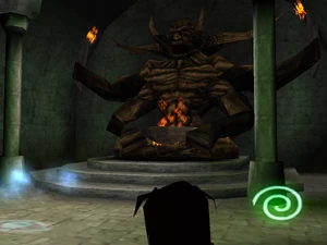 Raziel at the "babar" statue in the Fire Glyph Altar