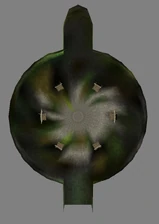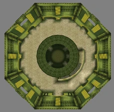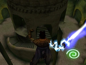 This area housed a large drawbridge tower which could give Raziel access to three different drawbridges. The walls of this room were decorated with a number of arch designs and decorative features and a stairway curved around the south of the tower leading up to the central tower area where a dial was poisoned along with a flip switch on the wall. By default the switch would lower a drawbridge from the southwestern wall which Raziel could cross and pass through a series of stepped zig-zag corridors to reach the final courtyard of the Razielim territory.[Soul Reaver][Soul Reaver/3]