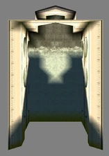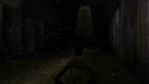 - The obelisk courtyard area has different textures on the obelisk and a different animation - as the obelisk breaks off from its base instead of merely toppling over. The room also has an additional block but it's unclear where it fits.