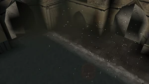 The name "The Ash Village" however may suggest a different possibility altogether, in that Dumah's territory was close to the deleted Turelim clan territory, which was also home to furnaces and the smokestack seen in the opening FMV. It is possible therefore the falling particles were a mixture of snow and ash falling from the smokestack.