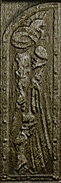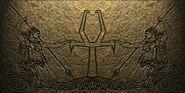 The Sarafan Keep is lavishly decorated, with a number of large icons and murals; The Sarafan Symbol is once again prominently displayed on floors, walls and on lamps (so the symbol is 'projected' onto nearby walls), there are also two new variants of the symbol one a double (reflected at the top) sarafan symbol, the other a large golden icon with a fire and a 'red eye' design in the crutch of the symbol. Interesting murals include a design on Kain's defeat by the Sarafan Lord (seen in the opening video), impaled vampires (wearing costumes similar to Kain's 'One Shoulder' attire, and the Sarafan Lord (armed with the Soul Reaver and using a Lightning attack) apparently taking revenge on the remains of the Vampire army. There is also another mural which may hint at theElder wars, with two (apparently Human ) figures holding up a Sarafan symbol and impaling a third winged creature with their spears (the mural is however, partially obscured - it may just be a bunch of feathers)[Blood Omen 2].