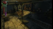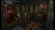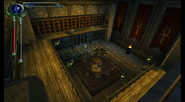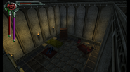 Kain entered the Keep[6][7] through the servants quarters and made his way through the opulent and luxurious Sarafan Keep, he was briefly stopped by a female Cabal Contact who demanded the death of nobleman Artemis, before he was given access to the upper levels of the Keep[8] to find Umah,imprisoned behind Ward gates on the roof.[9][10] Breaking her out he was confronted by the (Soul Reaver wielding) Sarafan Lord, but before Kain could be harmed, Umah teleported them to Sanctuary.[11]