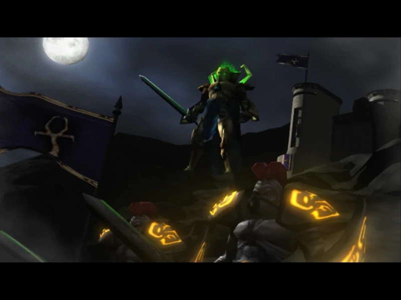 ↑Vorador:"Well done, Kain. You have entered the Sarafan Keep at last."//Kain:"Not without difficulty. I encountered another old friend on the way. Marcus."//Vorador:"I see. Then may I assume that another of the Sarafan Lord's Guardians have fallen?"//Kain:"You may."Crystal Dynamics. Blood Omen 2. (Eidos Interactive). PlayStation 2. (March 19, 2002) Transcript.