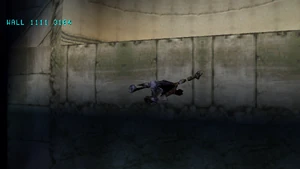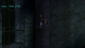 In Legacy of Kain: Defiance, for the first time Raziel was able to use the scaling walls ability in the Spectral Realm. Although the addition was unexplained in-game, Chris Bruno suggested the improvement was something "Raziel has learned over time".[2] The ability was originally intended to be revealed in cut underworld room Eldergod 5a, but the room and its dialogue were removed.[3] Perhaps connected to Raziel's Spectral climbing, it is noted that certain Scalable walls will now appear in only one realm, forcing Raziel to shift to use them.[Defiance manual]