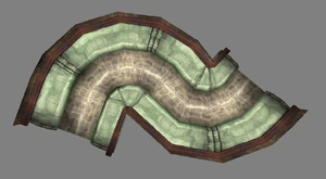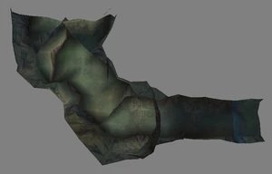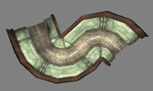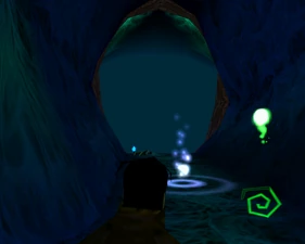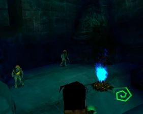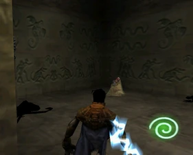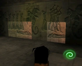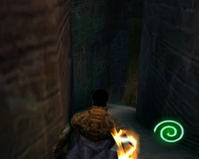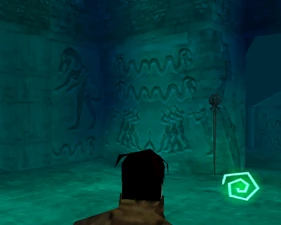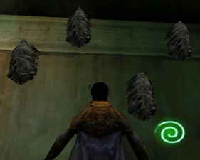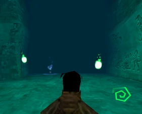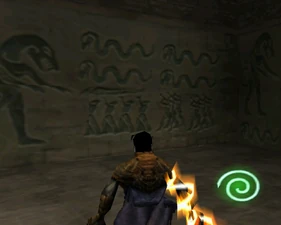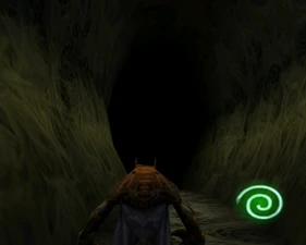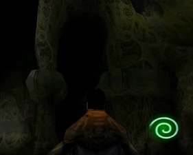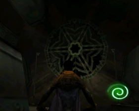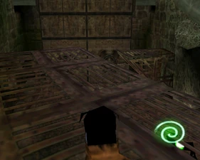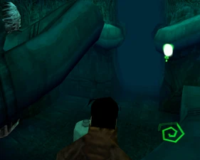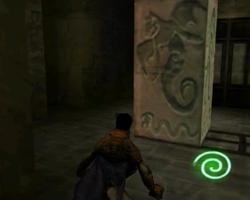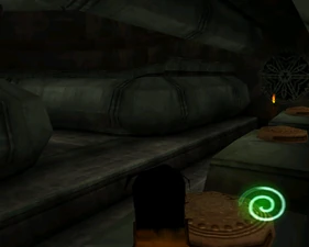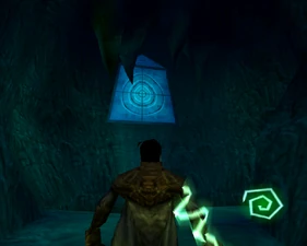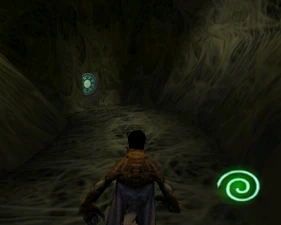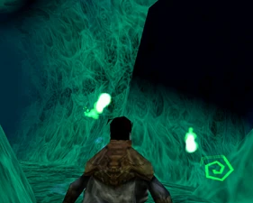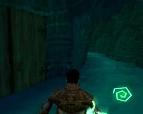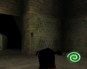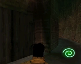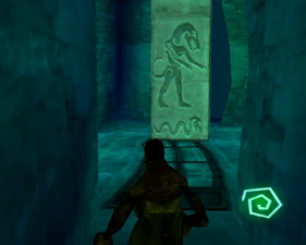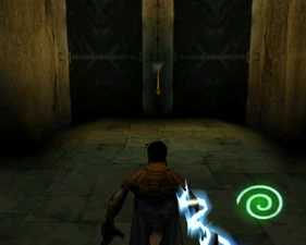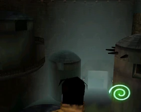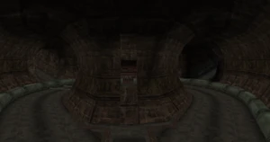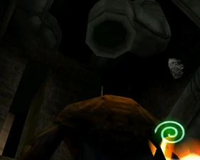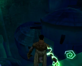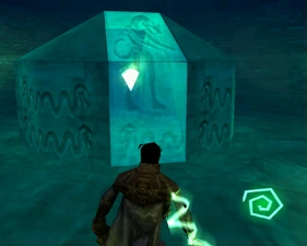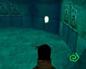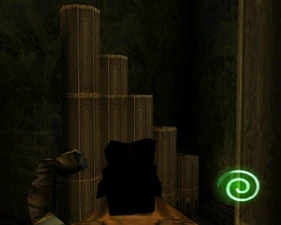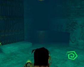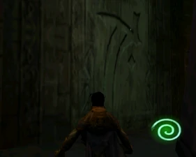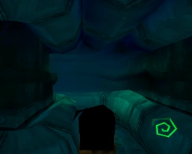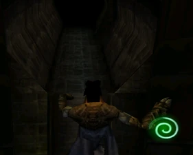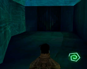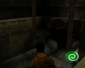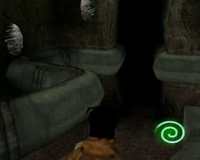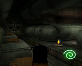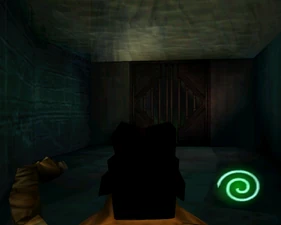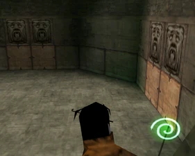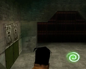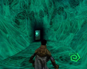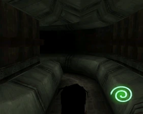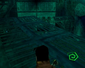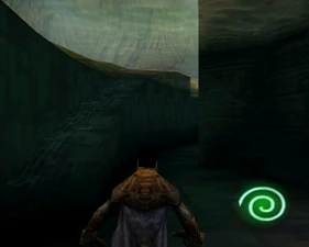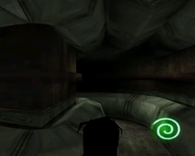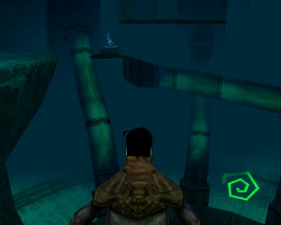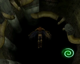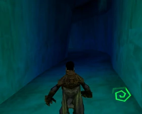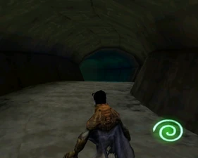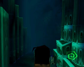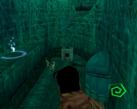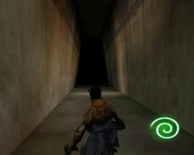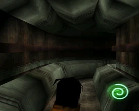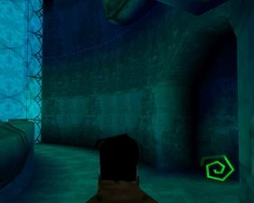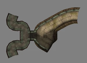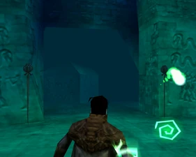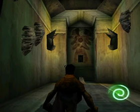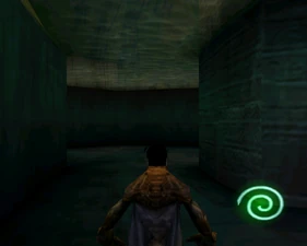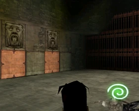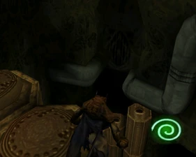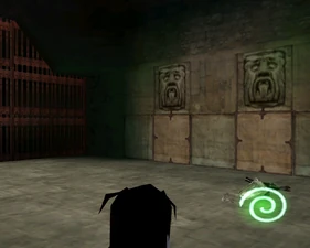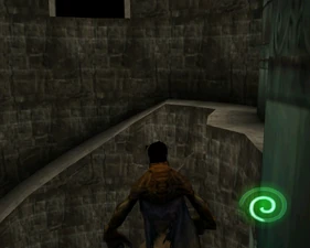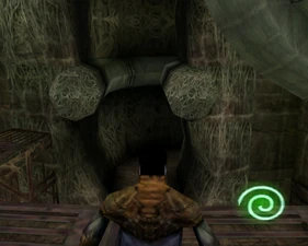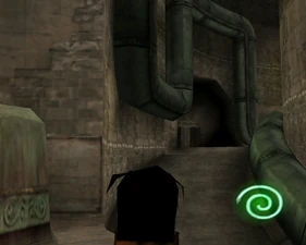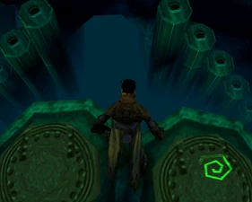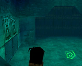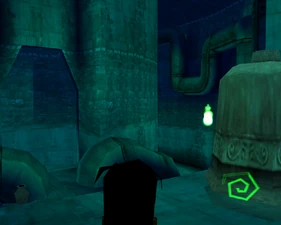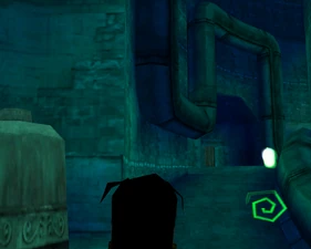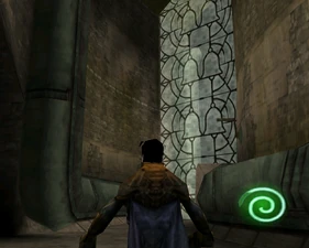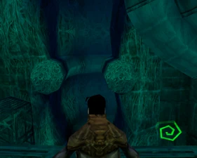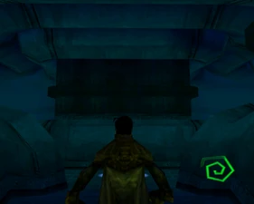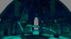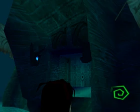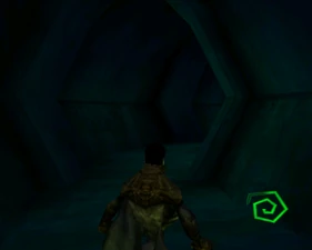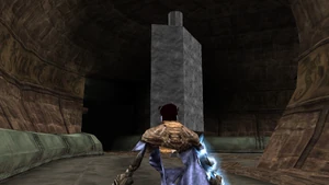 The large blocked entrances in the retail version of 'Cathy65' are open -as in some later beta versions - and this reveals them as another half of a branching corridor both of which pass either side of the central fan room. At the start of the branch a large unique constrict object and a unique block are positioned. The function of these are not definitively known but fragments of similar unused pipe and air-flow puzzles may suggest a late-game task to unblock the pipes of the Cathedral - possibly reflecting the final challenge before Raziel reached the pinnacle.