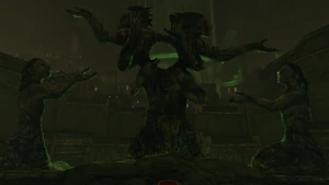 The Cathedral was a landmark in the events of Soul Reaver. Constructed by the humans as a holy weapon of destruction against Kain's empire, it was conceived to blast a deadly hymn which would destroy every vampiric creature on the face of Nosgoth. However, Zephon and the Zephonim murdered its guardians before its purpose was fulfilled. They coccooned themselves in the derelict Cathedral, now "a stifled titan [...] in mute surrender – unwilling host to a parasitic swarm."[Soul Reaver/Miscellaneous]