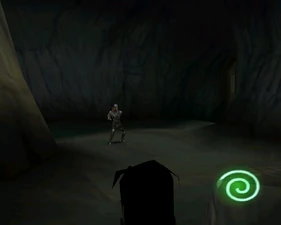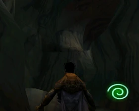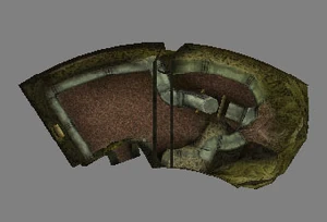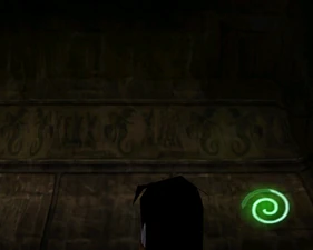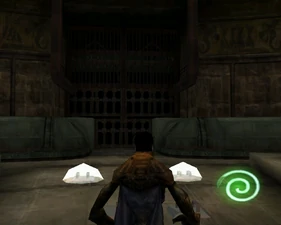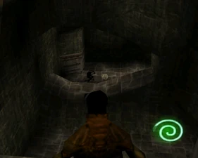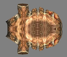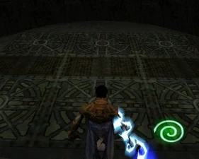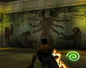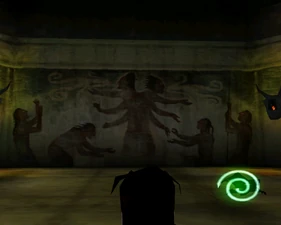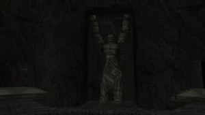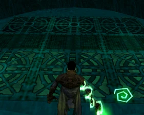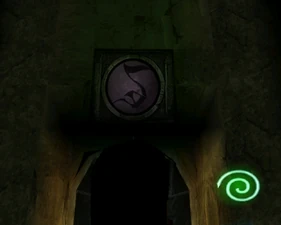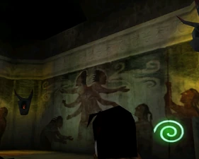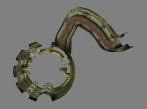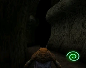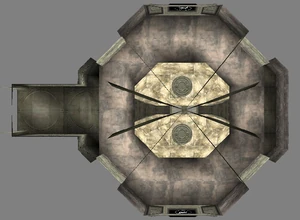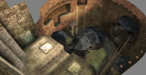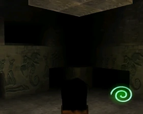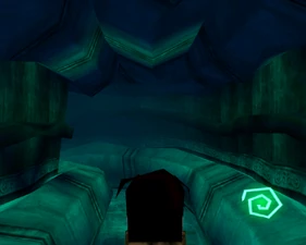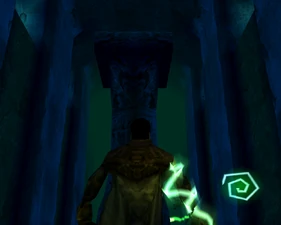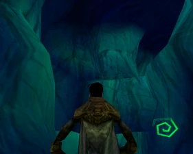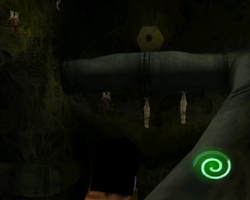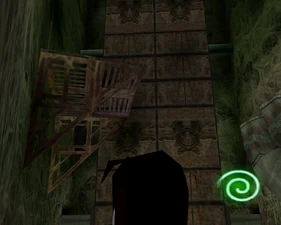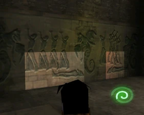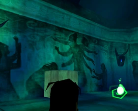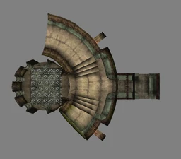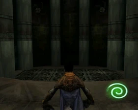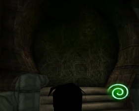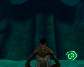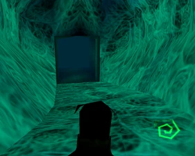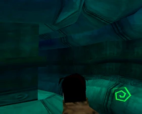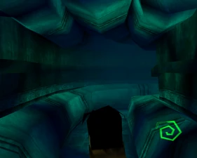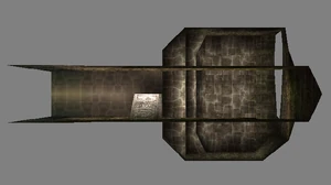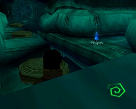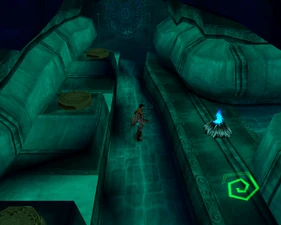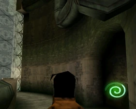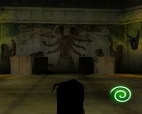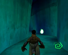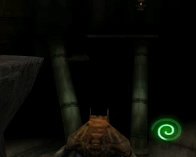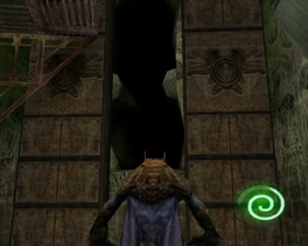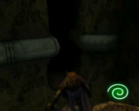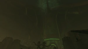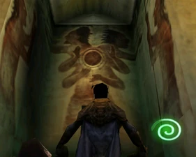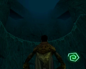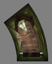 Behind Zephon's head is a further corridor leading upward. In earlier builds it's a narrow spiral walkway leading upto a large untextured open space , whereas the latest alpha build has a larger multiple ledged ascending chamber. These presumably represent attempts to render the pinnacle of the cathedral. The pinnacle location seen in the Chronoplast visions is not among the areas in the alpha and appears to have been a mock-up created later using the textures of Turel's Clan Territory.