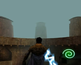 The Pinnacle of the Silenced Cathedral (background, right) as it appears in the Legacy of Kain: Soul Reaver intro