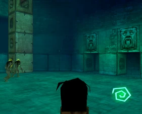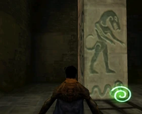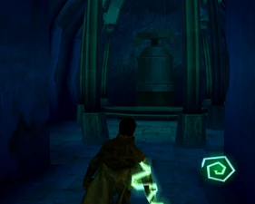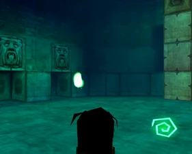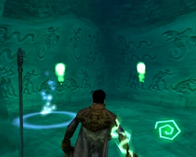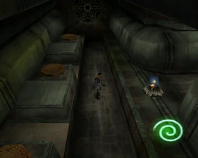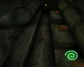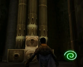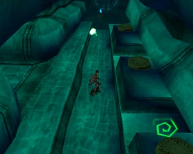 The main lower chamber has a large human statue overlooking the room from a ledge and the pipes bend into a different arrangement in Spectral making the jumping puzzle almost double-tiered. The mechanisms on the ledge are activated by placing boulders on pressure pads.