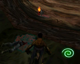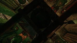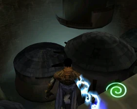 The village area contains no Zephonim but a human hunter is present. The buildings have some alterations to the height and a grate is positioned on a side ledge preventing jumping across.