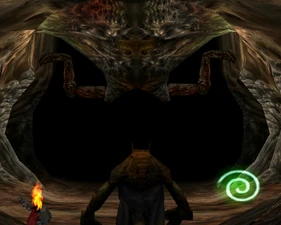 Zephon's lair has two side corridors which curve back to the top of the main chamber. Later builds shorten these corridors and put 'souls spouts in them - this design can be seen in later beta versions.
