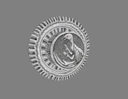 The artifact is labelled in game files as "vd_key_b". A corresponding lock texture labelled as "vd_keylock_b" is included in textures but only includes a repeat of the artifact textures suggesting it was used for after the placement of the crest in its lock. Another duplicate artifact texture - possibly used for cutscenes - is present at "dupe_vd_key_b". The actual lock texture is counted as part of the background environment and is labelled as "vorador12a-0001" and "vorador_ruin12a-0001" in the regular and ruined versions of the mansion respectively. The silver crest is also featured as part of the completed crest on "chapeldoor" texture - a mural of a skull-faced female vampire armed with the Soul Stealer. Crow symbology and similar motifs are featured throughout Vorador's Mansion - one symbol "keytworoom-0001" closely matches the silver crest and is appropriately used to mark the barrier to be broken to reach the pillar room where the crest is gained.[Defiance][Defiance/8][Defiance/12][Defiance][Defiance/8][Defiance/12]