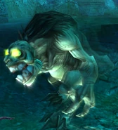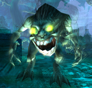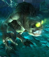 Sluagh were the scavengers of the Spectral Realm, where they could often be found feeding on lost Souls. Sluagh were arguably the most basic and common enemy variant encountered in Defiance, present in both eras in a variety of locations, although confined to the Spectral Realm. The Sluagh were green-skinned bipedal humanoids with large eyes that glowed yellow. They bore a strong resemblance to the previous Lesser Sluagh from Soul Reaverand Soul Reaver 2, although they were much more deformed and mutated with larger eye and a more hunced bestail appearance. As with other Sluagh variants, the Sluagh could recover from damage by consuming lost souls and even other vulnerable Sluagh - when defeated the Sluagh would become transparent and flee and at this time they could then be consumed as a regular soul.[Defiance][Defiance manual][Defiance strategy guide]