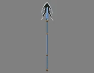 The item itself was a distinctive spear weapon made of a blueish metallic material with a long cylindrical hilt with two darker grips at the bottom and top of the shaft. At the top of the shaft a blue crystal was set into a small holder with the crystal octagonal in shape and tapering towards the top of the spear. The spear head protruded from the sides of the crystal emerging in a large arrow shaped tip with two jagged wing-like protrusions swept back against the crystal - giving the overall impression of a vaguely fish shaped spear head.[Defiance][Defiance/8]