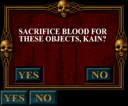 - Sacrificing blood removes 3/4th of Kain's blood, or 30 units (about half of the area under the line), whichever is higher. The amount of items received in return is: