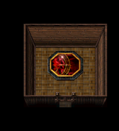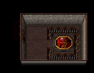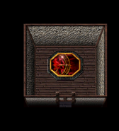 Kain could find found his first Spirit Forge in Blood Omen shortly after he passed the pillars in the chapter "Nupraptor". Most of the forges were most blocked by Moon gates and were thus only accessible on the Full moon. Once inside, a rocky passage marked with a floor mural of the specifc artifact that could be gained led to the forge room - an open space decorated with patterns of curious intricate green symbols. At the end of the forge chamber was a darkened stepped altar backed by red stained glass where the Wraith Smith awaited. Once approached a prompt would offer Kain the chance to swap his blood for artifacts.[Blood Omen][Blood Omen/3][Blood Omen manual (PlayStation)][Blood Omen manual (Windows)][Blood Omen strategy guide][2]