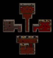 At around the same time as the Energy Bank Spirit forge could be entered, the Anti-Toxin forge could be reached as well. This forge can be found in a cave in the north of the Termogent Forest, just northwest across the swamp from the Flame Sword Dungeon.The entrance was blocked by a tree and thus required the axes to chop down and enter. The backdoor was found in the same room as the Energy Bank backdoor through a secret teleporter in the Control Mind Dungeon which required all the Secrets in the dungeon to have been gained. Activating the levers here opened the way to backdoor teleporters leading the Energy Bank and Anti Toxin forges, with the Anti-Toxin teleporter located in the alcove at top of the central staircase.[2][6]