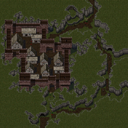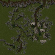 The next forge that could be encountered was the Putresce Spirit Forge. This forge could be found in a cave to the east of the trail leading from Vasserbünde to Coorhagen. The backdoor was in Vasserbünde in the house blocked by a standing stone, requiring the usage of the Spiked Mace to enter - once inside it was necessary to push a hidden switch in the upper left corner of the left room to move the cage in the central room, which opened the passage to the teleporter, allowing Kain to sacrifice the nearby villagers.[2][5]